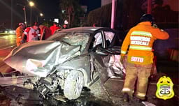 Eran las dos y media de la mañana cuando se reportó el accidente del tipo contra objetos fijos a la altura del fraccionamiento Jardines del Valle, bomberos de Mexicali también debieron de acudir al lugar ya que el auto derramó aceite.