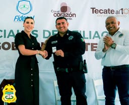Para que tengan mejores condiciones laborales a quienes salvaguardan la paz en la entidad, la gobernadora Marina del Pilar Avila Olmeda hizo entrega de credenciales de afiliación a policías municipales de Tecate, para los 198 agentes y sus familias cuenten con los servicios de salud del Instituto de Seguridad y Servicios Sociales de los Trabajadores del Gobierno y Municipios del Estado.