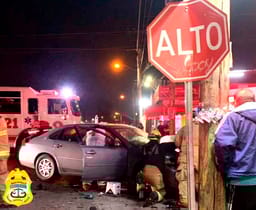 Poco después de las diez de la noche del domingo, apurado conductor de un auto viejo y sin seguro, ingresó a toda velocidad al fraccionamiento Villa Colonial por el Paseo de Las California, no paró el alto de Roberto Montenegro, tampoco en el de Misión Viejo, menos en el de la Malibú, pero su suerte se acabó al llegar al alto de Altaloma, donde está la tienda de Los 3 Animales, donde se impactó contra un Avenger.