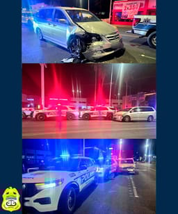 Reynaldo Gabriel “N”, de 30 años de edad, conducía una vagoneta Honda Odysey, color gris, modelo 2006, placas de California, con la que impactó por alcance dos vagonetas Ford Explorer de color blanco, modelo 2025, patrullas de la DSPM, estacionadas en el acotamiento con códigos encendidos en la calzada Cuauhtémoc y dijeron que la calle Buenos Aires, pero en realidad estaban en la Río Colorado, a una cuadra del Relajo. No se sabe si vigilando o cazando borrachos.