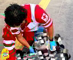 A la avenida Vicente Suárez frente al número 1151 encontraron a un masculino de 81 años identificado como César, el cual presentaba impresionantes lesiones por mordedura de animal, una que le produjo fractura expuesta de tibia y peroné de su pierna izquierda y la amputación traumática del pulgar de su mano del mismo lado, por lo que los paramédicos rápidamente lo atendieron en el lugar y lo trasladaron al Hospital General.