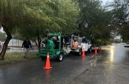 Brigadas del Gobierno de Mexicali que realizan los operativos de desagüe en diferentes vialidades de las colonias de la ciudad que presentan encharcamientos, continúan con su importante labor ante la contingencia ocasionada por las lluvias.