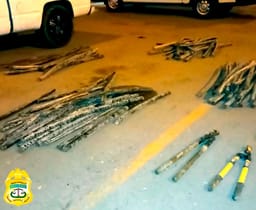 Los detenido son los tocayos Efrén Guadalupe “N” de 49 años y José Guadalupe “N” de 34, alias “Los Lupitos”, ellos traían dos pinzas tipo tenazas de corte y en la caja de un pick up Chevrolet 97 blanco con placas de California, estaban 100 tramos de cableado de fibra óptica, 40 tramos de 1.50 metros y 60 de 1 metro.