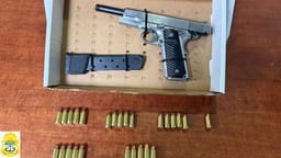 MEXICALI.- Derivado de un reporte a la central de emergencias C5, en el que se informó sobre una persona armada en el fraccionamiento Valle del Pedregal, agentes de la Policía Municipal detuvieron la madrugada de este miércoles a Elioenai "N", de 46 en poder de una pistola calibre .380 con un cargador abastecido con seis cartuchos útiles.