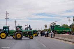 Mexicali, Baja California. Agricultores del Valle de Mexicali iniciaron la mañana de este lunes el bloqueo de la carretera a San Luis Río Colorado, como parte del paro nacional convocado por el Frente Nacional por el Rescate al Campo Mexicano, en demanda de mejores condiciones para el sector agrícola.