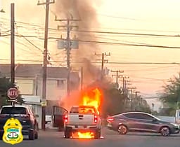 Con daños totales quedó un pick up que al ir circulando por la calle K y al llegar a la avenida Tapiceros en la colonia Burócratas, inesperadamente su conductor frenó ya que salía mucho humo del cofre, en cuanto se bajó a ver que pasaba, el vehículo estalló el llamas.