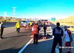 Bomberos de la Estación 13 Progreso, paramédicos de la Cruz Roja y Guardia Nacional acudieron al sitio del accidente, justo frente a las instalaciones del club de tiro Jabalí, para atender al lesionado tripulante de una vagoneta Volkswagen Combi, color azul oscuro, que fue impactada por un tractocamión con caja, proyectándola afuera de camino.