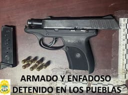Cuando las autoridades llegaron al lugar quien fuera identificado como Salvador “N” de 32 años, arrojó al suelo una pistola escuadra marca Ruger calibre 9 mm, cargada con 7 cartuchos útiles.