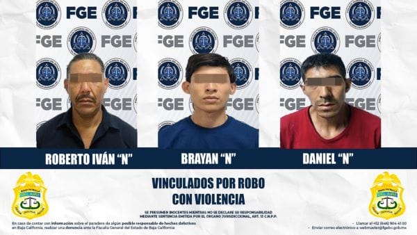 MEXICALI.- Tres hombres acusados por diversos robos cometidos con violencia en establecimientos comerciales de la ciudad fueron vinculados a proceso, y Roberto Iván “N”, Brayan “N” y Daniel “N”, quedaron en prisión preventiva, reportó la FGE.